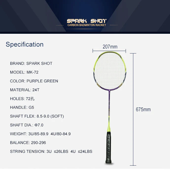 7.0mm رمح الكربون الريشة مضرب MK72 مصنوع من مواد الكربون الكاملة. مع قطر العمود 7.0mm. إنه للاعب المحترف.